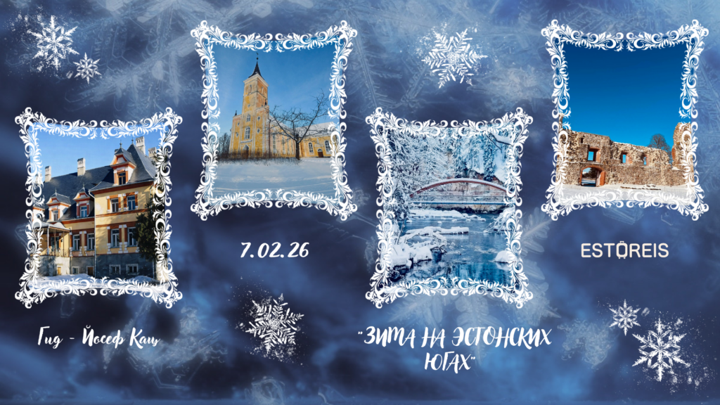 АРХИВ ПОЕЗДОК «Путешествие в Ханко по Королевской дороге» с Эдуардом Кольхоф. Смотреть «Вокруг весенней столицы: Тюри и окрестности с Йосефом Кацем». Смотреть «Симфония весны: природа и искусство». Смотреть «Музы камня и воды: по следам вдохновения Амандуса Адамсона» с Мариной Дунаевой. Смотреть «Фестиваль каракатиц в Причудье» Смотреть «Кадриорг царский, президентский и хулиганский.» с Алексеем Шишкиным. Смотреть «Влюбиться в Швецию: сага о Сигтуне» c Йосефом Кацем. Смотреть «Зима на эстонских югах» с Йосефом Кацем. Смотреть «Зима на эстонских югах» с Йосефом Кацем. Смотреть Театральная поездка «ШЕСТЬ ШЕРЛОКОВ / ТЕАТР ЧЕХОВА» Смотреть «В страну чудес по зимней Эстонии» с Мариной Дунаевой. Смотреть «Северная готика и финский модерн! Выставка Густава Климта и Акселя Галлен-Каллелы и потаенные достопримечательности Королевской дороги» с Алексеем Шишкиным. Смотреть «Копли и Ноблесснери: рождественские истории Пыхья-Таллинна с Йосефом Кацем» Смотреть «Ёлки 2026: Рождественский Таллинн под покровом Святой Екатерины» Смотреть «Ёлки 2026: Рождественское волшебство Таллинна» Смотреть